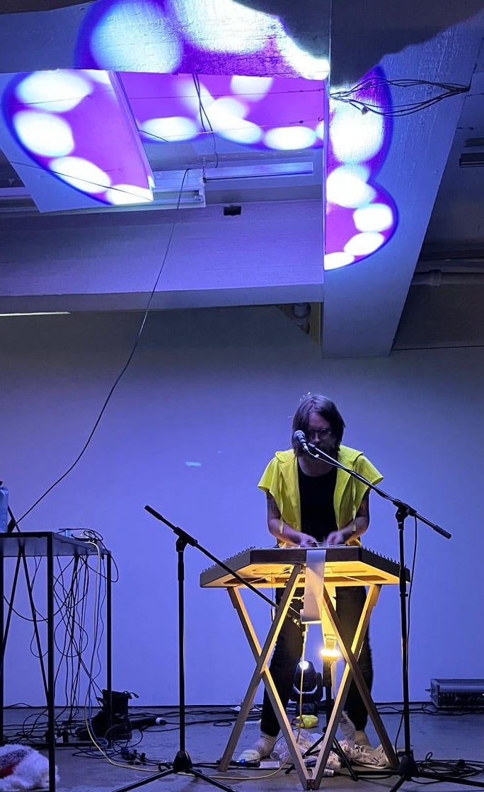 Anyway, maybe it’s not a solo performance after all, instead: a collab between me and a bunch of wires and electricity and people next to me. I think that this stuff is part of the *meaning* of the work. The technology is a duet partner, and her part is just as interesting and artistic as mine.7